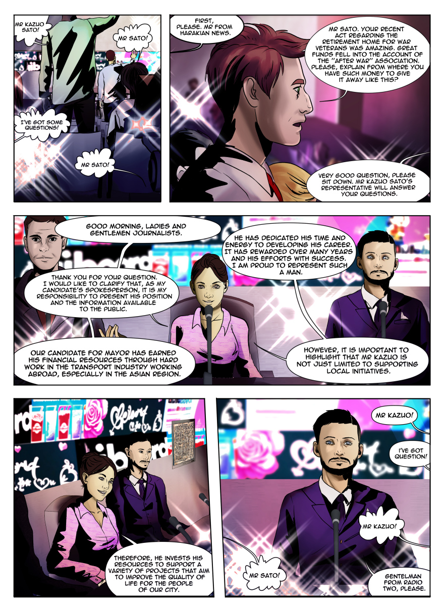Zanim Kazuo Sato stał się nieskazitelną ikoną miejskiej władzy, musiał wyretuszować każdy cień własnej ludzkości. Ale nie oczekujcie tu kazań o moralności – Kazuo z właściwą sobie, polityczną elegancją woli projektować światy ze szczytu biurowca, niż zaglądać w głąb własnego sumienia.
